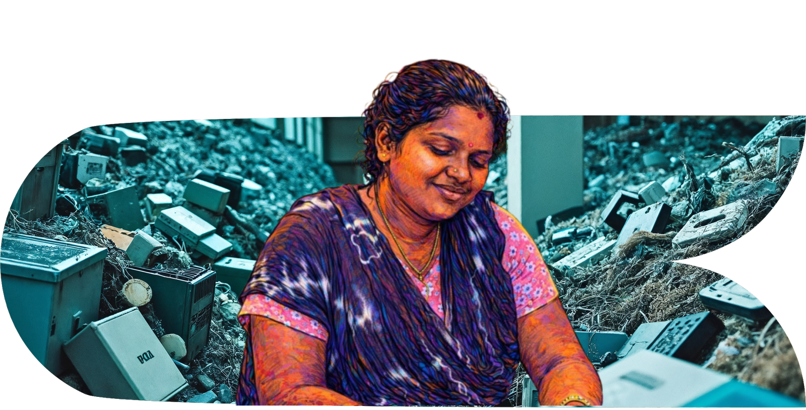 Through the E-Rozgar initiative, she has stepped into a leadership role at the electrical waste collection unit, where she is actively involved in trainings, enterprise setup, and managing daily operations. With aspirations to formalize her work, gain recognition in society, and lead her community towards collective ownership of waste enterprises, Jaya Lakshmi is also deeply committed to creating a secure future for her child, free from the vulnerabilities of informal labour.
